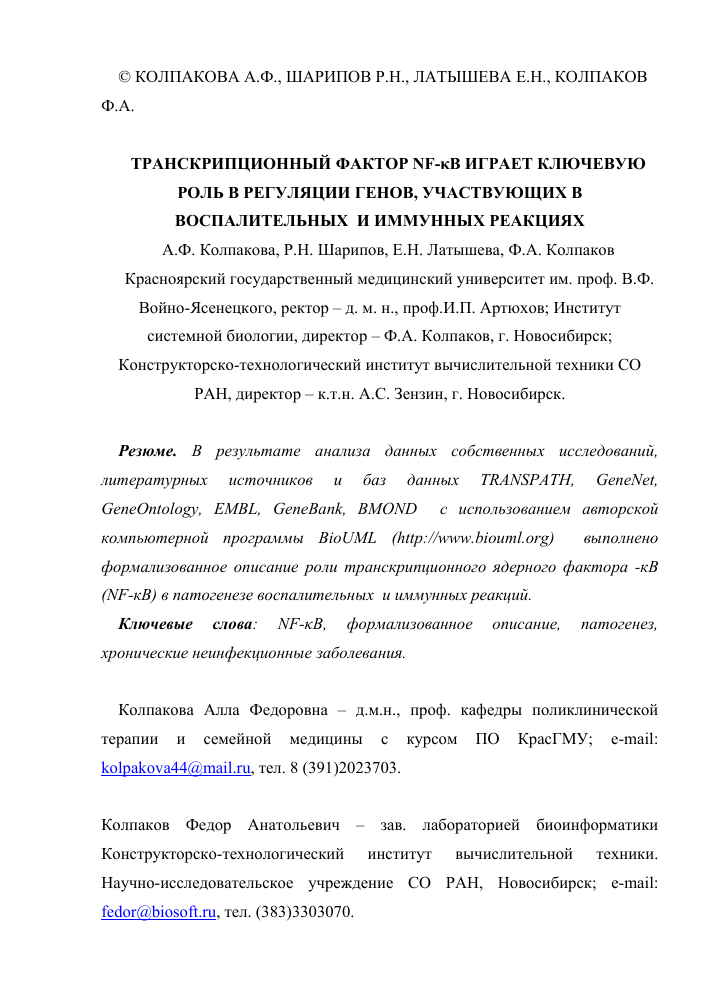Роль транскрипционных факторов в регуляции генетической деятельности