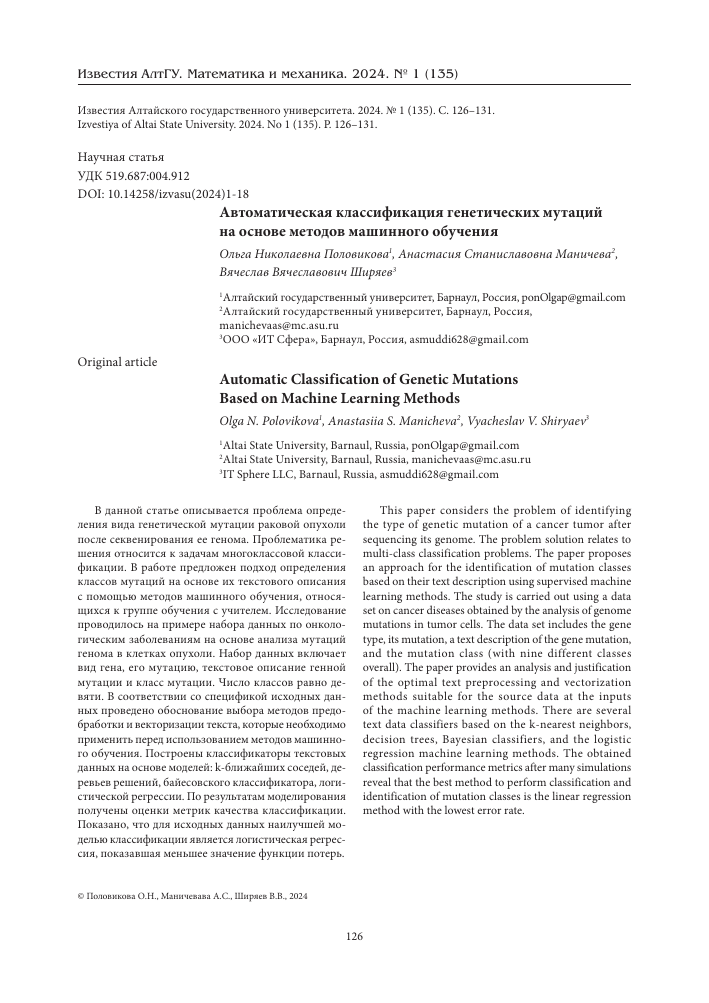 Мутации — это изменения в последовательности ДНК‚ которые могут происходить по разным причинам: ошибки при копировании‚ воздействие окружающей среды‚ ошибки в репликации. Они могут быть как нейтральными‚ так и приводящими к серьезным заболеваниям‚ таким как рак‚ наследственные болезни или генетические синдромы. Поэтому задача обнаружения мутаций актуальна для медицины‚ биологии и фармацевтики.